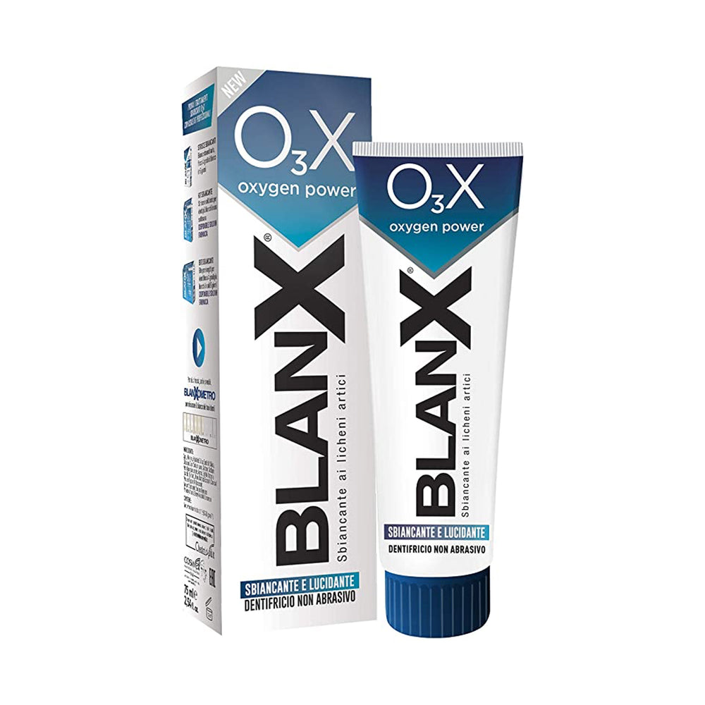 Sorriso più bianco e luminoso ogni giorno. BLANX O3X sfrutta la tecnologia all’ossigeno attivo per aiutare a rimuovere le macchie superficiali e contrastare l’ingiallimento, lasciando i denti lisci e brillanti e l’alito fresco a lungo. Formula studiata per l’uso quotidiano e delicata sullo smalto.