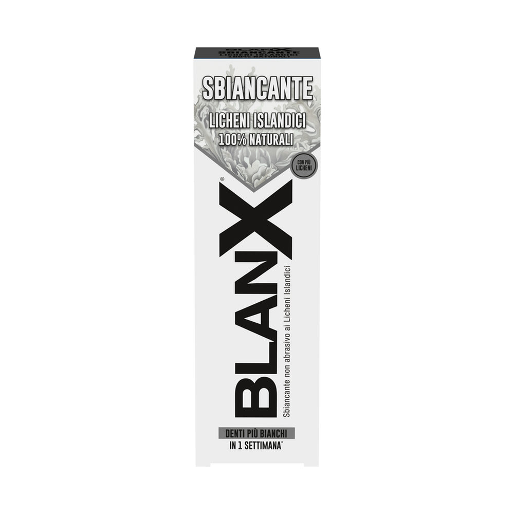Sorriso più bianco e luminoso ogni giorno. BLANX Sbiancante aiuta a rimuovere le macchie superficiali (caffè, tè, fumo) e a contrastare l’ingiallimento, lasciando i denti lisci e brillanti e l’alito fresco a lungo. Formula studiata per l’uso quotidiano e delicata sullo smalto.