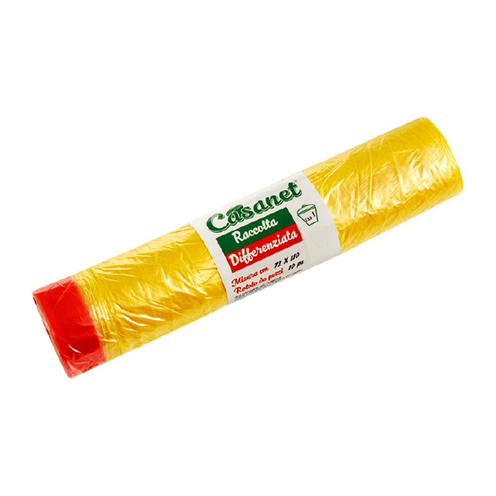 I Sacchi Casanet per la raccolta differenziata – colore giallo – dimensione 72×110 cm sono la soluzione ideale per contenitori di grandi dimensioni, condomini o attività che producono molti rifiuti. Grazie al colore distintivo, aiutano a mantenere ordine e rispetto nel separare i materiali da riciclare. Realizzati in polietilene resistente, offrono robustezza per un uso frequente e pesante.