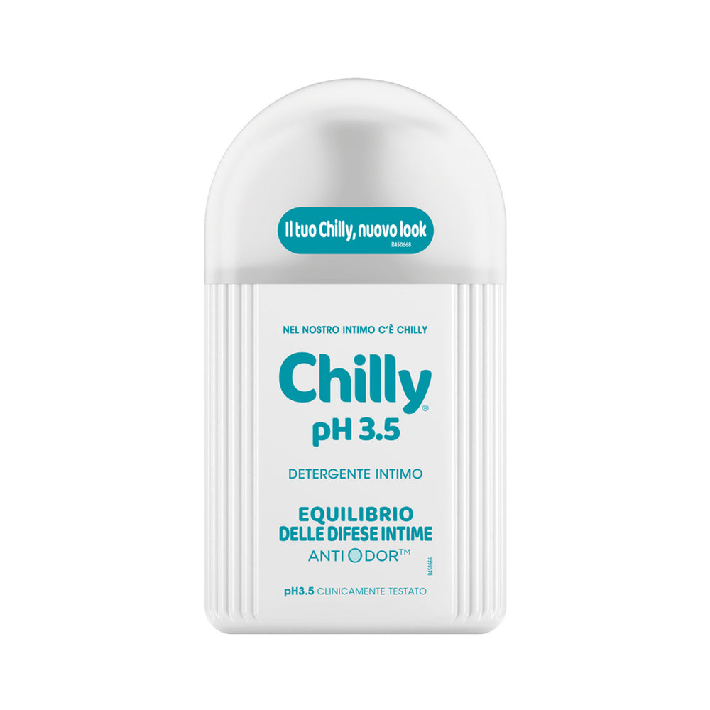 Detersione intima delicata con pH 3,5. CHILLY pH 3,5 è studiato per aiutare a mantenere l’equilibrio fisiologico della zona intima e donare una sensazione di freschezza e comfort ogni giorno. Ideale come detergente quotidiano, specialmente nei momenti in cui si desidera una protezione extra.