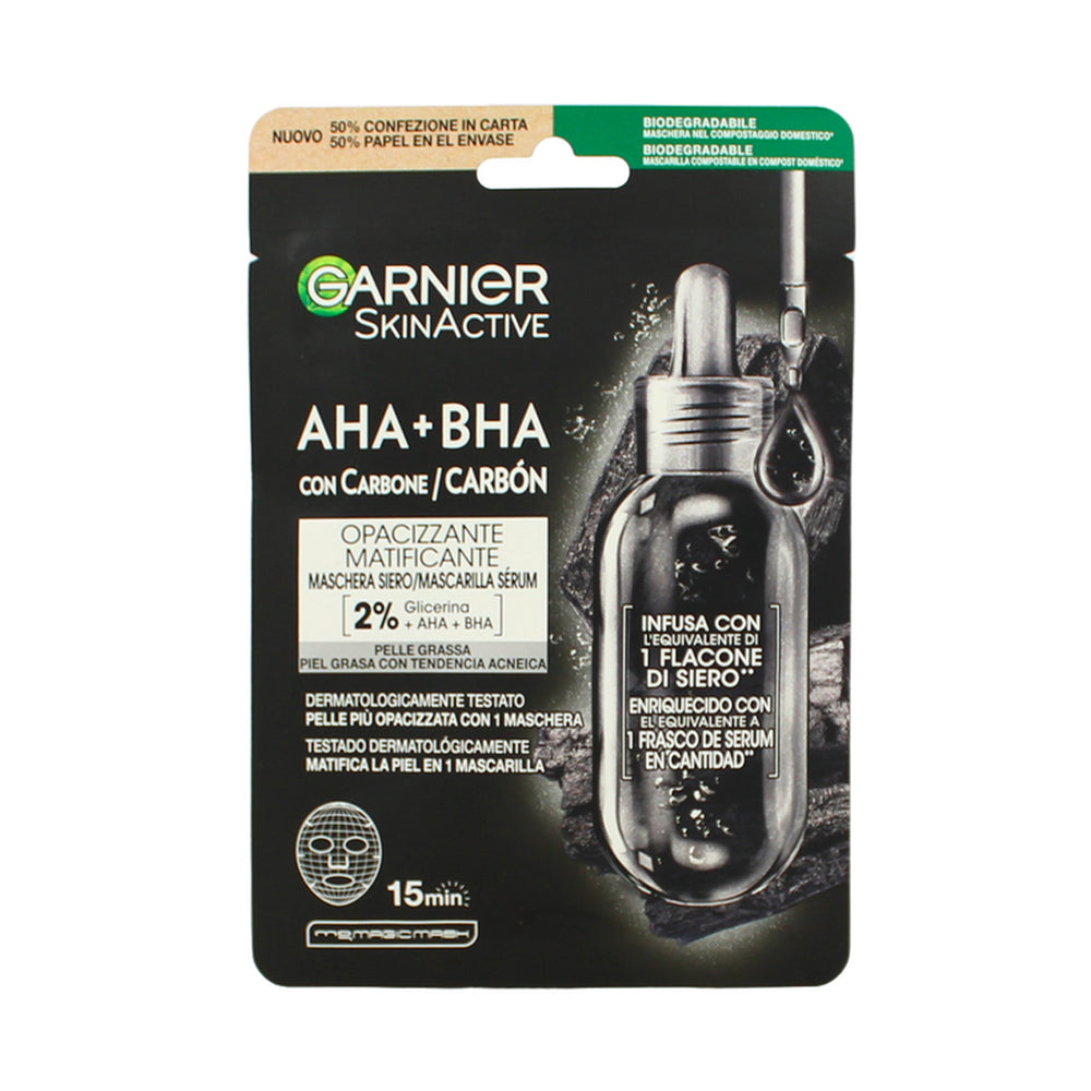 1 Maschera viso in tessuto monouso Garnier SkinActive AHA + BHA con Carbone.