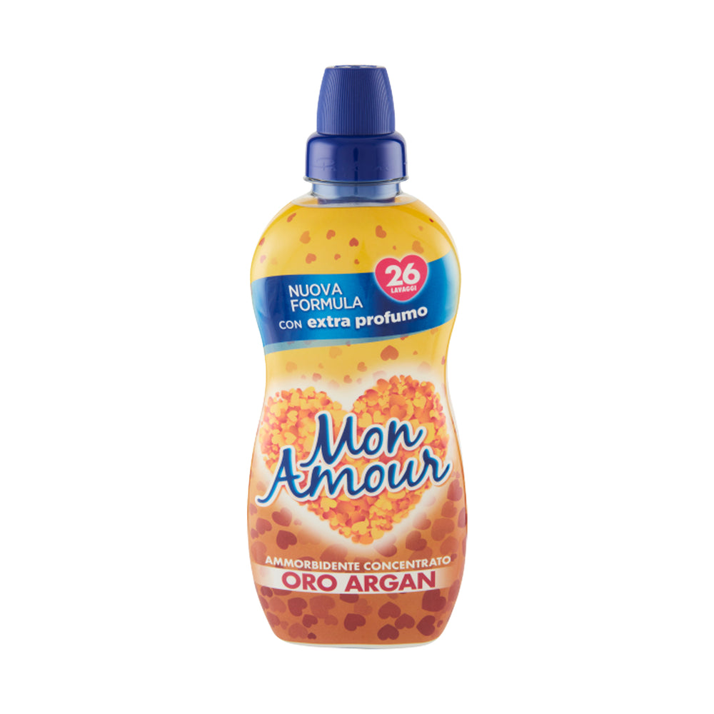 Il Mon Amour Ammorbidente Oro 26 lavaggi è un ammorbidente liquido concentrato che dona ai tessuti una morbidezza intensa e un profumo elegante e sofisticato. La fragranza della linea “Oro” avvolge i capi con note calde e raffinate, mentre la formula concentrata assicura efficacia anche con piccole dosi.