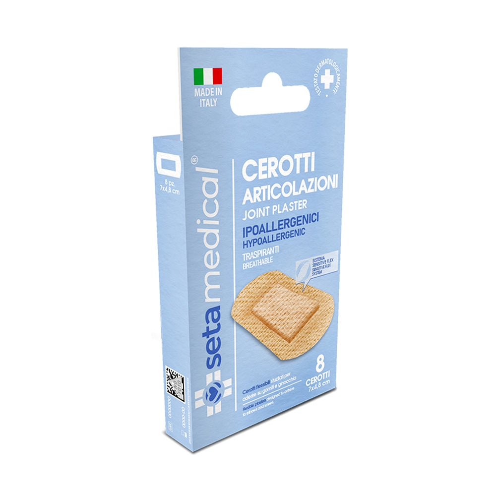 I Cerotti Articolazioni SETAMEDICAL sono studiati per l’applicazione su zone soggette a movimento come ginocchia, gomiti, polsi e spalle. La forma e la flessibilità permettono una buona aderenza senza limitare i movimenti, garantendo comfort durante l’uso quotidiano.