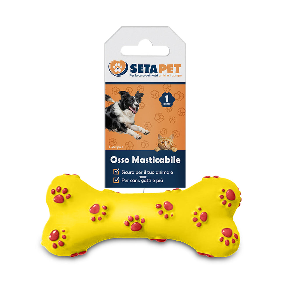 Il SETAPET Osso Masticabile in PVC è pensato per soddisfare l’istinto naturale di masticazione del cane, contribuendo al suo intrattenimento quotidiano. Realizzato in materiale resistente, aiuta a tenere il cane impegnato e può favorire una corretta igiene orale durante il gioco.