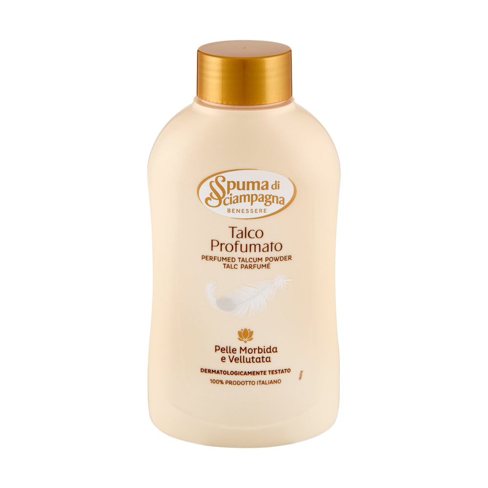 Il Talco Profumato Spuma di Sciampagna 200 g è un classico intramontabile della cura della pelle, perfetto per coccolarti dopo il bagno o la doccia. Realizzato con materie prime raffinate, questo talco offre una texture setosa che si stende facilmente, lasciando la pelle asciutta, morbida e piacevolmente profumata per molte ore. Ideale per donare benessere e comfort, è adatto anche alle pelli più sensibili, grazie alla sua formulazione delicata e ipoallergenica.